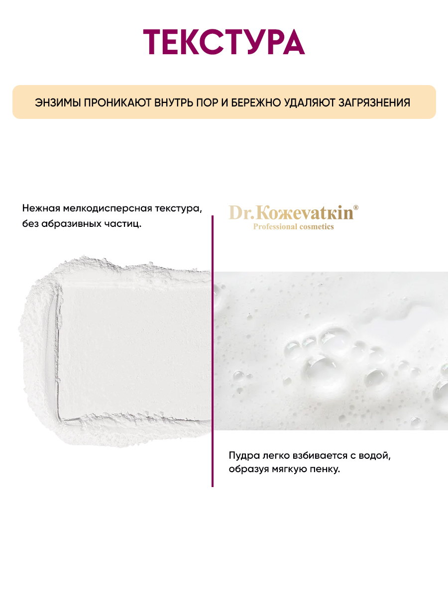 Профессиональная косметика Энзимной линии от бренда Dr. Koжevatkin представлена средствами для бережного и глубокого очищения кожи на основе натуральных растительных энзимов. Эффект от применения средств этой линии достигается благодаря энзимам (ферментам) - особым белкам-катализаторам, которые ускоряют биохимические реакции в дерме, направленные на процессы обновления. Они отличаются своей гипоалергенностью, обладают мягким отшелушивающим, противовоспалительным и антибактериальным действиями. Стимулируют обновление клеток, выравнивают цвет лица, уменьшают количество черных точек, нормализуют работу сальных желез. Растительные экстракты в высокой концентрации сокращают морщины, улучшают цвет лица, повышают эластичность и упругость кожи, делают тон лица свежим и здоровым, как после отпуска на природе.